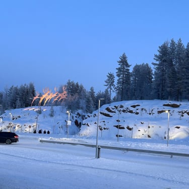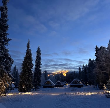 The journey to Pyhä was around 90 minutes by (an almost entirely straight) road. As the landscape grew wilder and more remote, excitement built steadily in the back seat. By the time we arrived, our two boys could barely contain themselves. Snow underfoot, toboggans waiting to be claimed, and a sense that adventure was quite literally everywhere they looked.
