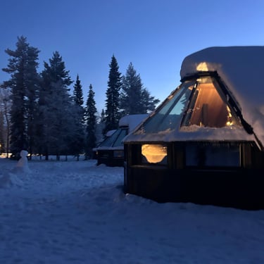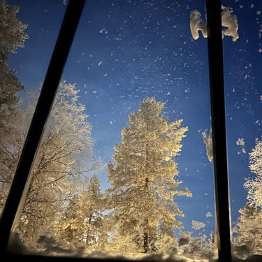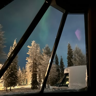 After dinner, we would return to our cabin. Sauna on, hot showers, pyjamas. The boys would fall asleep quickly, exhausted from the cold air and the day’s adventures, while we lay quietly beneath the glass roof, hoping for a flicker of green light across the sky.