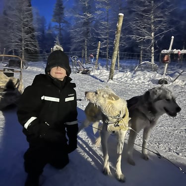 Equally magical were the huskies. Excited, friendly, and full of energy, they reminded the boys of our much-loved German Shepherd, Suki back home. It was clear how loved these dogs are and how much they enjoy running. Seeing them dash across the snow, eager to pull the sleds, brought pure joy to everyone.